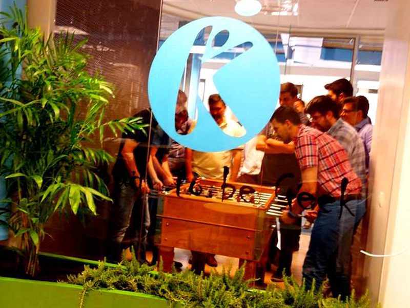 Se consiguió «humanizar» la K del nombre con la figura de alguien que acaba de tener una gran idea y que quizá podría estar gritando ¡¡eureka!!