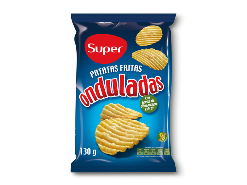 Línea Premium para la variante con aceite de oliva y onduladas en bolsa contenedora de aluminio e impresión mate en los dos casos.