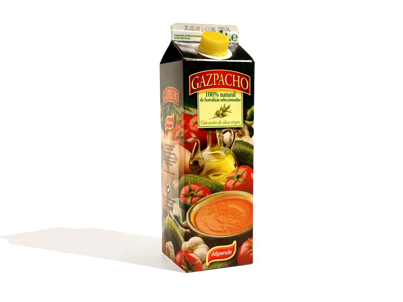 Mantequilla, anchoas, gazpacho y barritas de cereales en un ejemplo de buena técnica de impresión sobre soportes diversos.